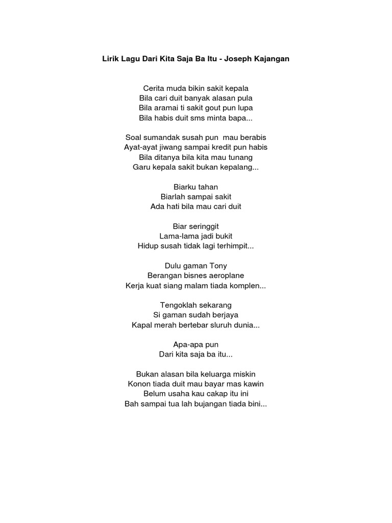Discover and save your own Pins on Pinterest. Lirik Lagu Dari Kita Saja Ba Itu - Joseph Kajangan. About Press Copyright Contact us Creators Advertise Developers Terms Privacy Policy Safety How YouTube works Test new features Press Copyright Contact us Creators.