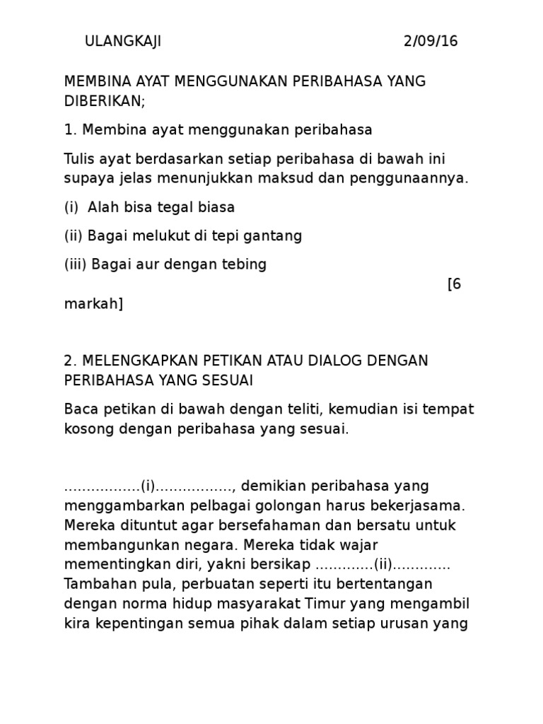 Latihan Peribahasa 8 Tatabahasa Spm Kssm